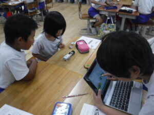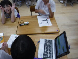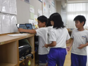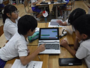 3年生です。A組では、2回目のプログラミングで『LEGO®︎WeDo 2.0』を動かしています。「おもしろい!」そうです。指示(プログラミング)の通りにしか動かないので、とても「論理的な思考」が育まれます。最上位の「レゴ® エデュケーション SPIKE™ プライムセット」も学校にあります(入善町所有)ので、クラブの時間は、もっと難しいプログラミングに挑戦できます。明日から10月です。