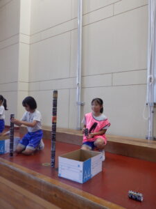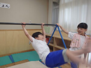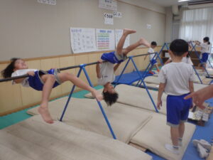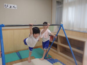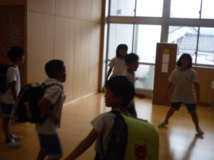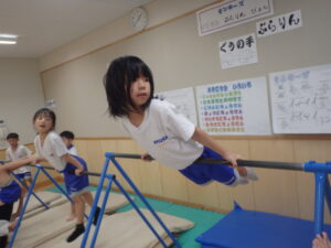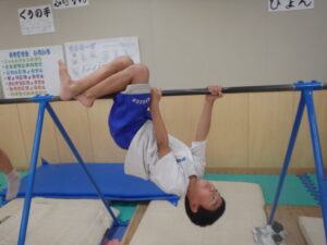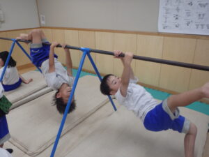 本校には屋内に「鉄棒ゾーン」があるので、1年中、鉄棒に取り組むことができます。1年生の体育「てつぼうあそび」が始まりました。本校では、この「てつぼうゾーン」で遊んだ下学年のほうが、鉄棒が上手いという状況が生まれています。いかに「遊び」と「場」が大事かを忘れずにいたいものです。