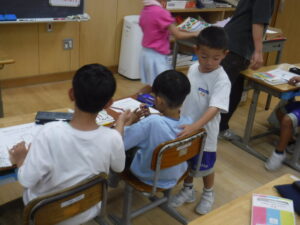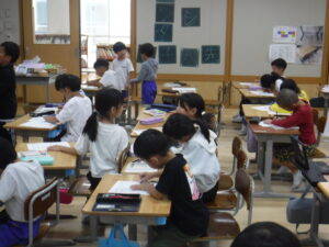 「進化を続ける係活動」が「大臣活動」です。いろんな会社(係活動)をやっています。そこに、3Bでは、月に1回、会社活動を見直す「大臣活動」の日があるのです。今日が大臣活動でした。この会社の活動はどうなのか?いらないのではないか?といった「大臣(全員)」が話し合う日でした。「あいさつ会社」は、もう十分とういうことで、発展的解消したそうです・。その変わりに、「時間に遅れないように」「提出物を確認してくれる」新会社「おしらせ」会社が誕生したそうです。時折、振り返って見直すという「大臣活動」は、なかなかのものです。主体的な雰囲気が高まっていますね。