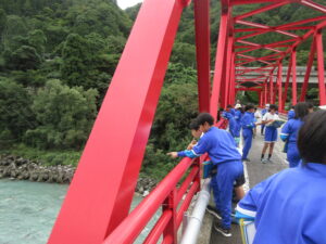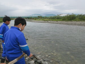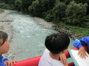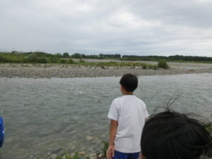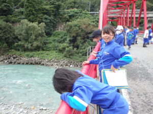 5年生は、理科の現地学習に行ってきました。これは、町教育センターでバスを配車していただける学習会です。入善小にとっては、「黒部川」は意外に遠い川です。黒東小学校や飯野小学校のように身近ではないようです。理科の「川の流れ」の学習として、実際に現地を見学するのは、効果的な学習ですね。あいにく雨でして、多くはバスの中から、晴れ間に外に出て、川の様子を観察しました。黒部川の上流(音沢)、中流、下流と観てきました。今度は、川を見る目が変わってくることでしょう。