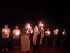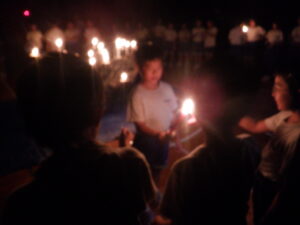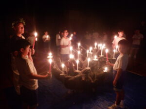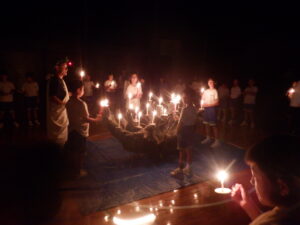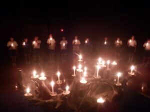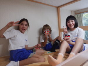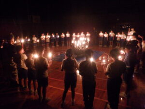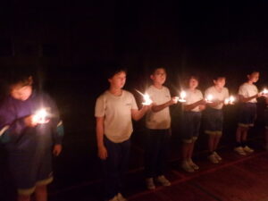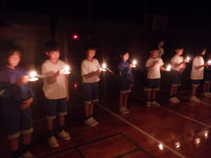 4年生の宿泊学習。ウォークラリーも無事、全グループがゴールしたそうです。ちょうど、「夕べのつどい」を観てきました。集まりが早く、静かに待てるので、いろんな方から褒められていました。夕べのつどいも司会の子たちは、原稿なしで進行しています。そして、寺崎先生、大越先生、太田先生のアクティビティを1つずつやって、楽しみました。「木こりとリス」という名作ゲームを久しぶりに観ました。さて、子供たちは、これから楽しみな「夕食」です。学校に戻ると、今から大島先生が、キャンドルサービスを観にいくそうです。