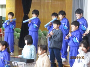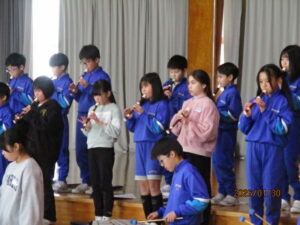 6年生を送る会に向けて、4年生は、合奏「キセキ」に取り組んでいます。今日は、ついに体育館での演奏をしました。順調な仕上がりのようです。4年生は、3回の発表を予定しています。