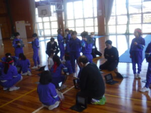2年A組の体育の授業は、太田先生が指導しています。その授業を校内研修として、教職員で参観いたしました。今回は、射水市の大門小学校の阿尾校長先生を講師として招聘し、より子供が育つ体育の授業のあり方について、校内研修を行いました。2年生がタブレットのカメラ機能やロイロノートを上手に使っており、とても感心しました。