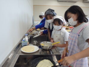 今日は、卒業アルバムの「クラブ活動撮影」の日でした。さて、料理クラブでは、クレープを作って、おいしくいただきました。