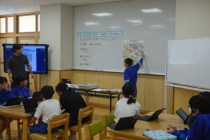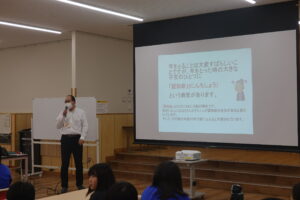 5年生を対象に恒例の「認知症サポーター養成講座」が行われました。これは、入善町保健福祉課の主催の講座で、3名の方が講師として来校されました。「認知症」について知り、「認知症の方」に対してどのように接すれば、お互いに上手に生活していけるのかを考えることをねらいとしています。認知症の症状や原因、そして高齢化社会の現状の説明を聞いた後、あるケースについて動画を観て、「どのように接すれば良いか」を考えました。「共助」を考えるとてもいい講座でした。入善町社会福祉課に感謝申し上げます。
