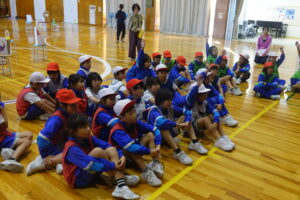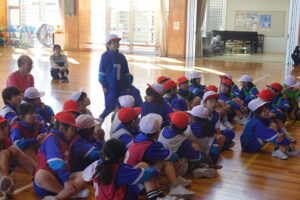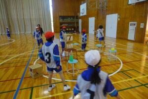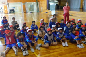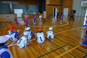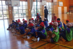 2年生の体育科、新単元「ドーナツボール」がいよいよ始まりました。1時間目です。2年生は、「ドーナツボール?」という感じですが、國木先生のお話を聞いて、「先生たちでやった動画」を観ると、「もう、やりたい!」モードになりました。しかし、1時間目ですので、活動場所やルールを確認しながら、最後に実際にやってみました。1年生でも「少しルールを変えたドーナツボール」が始まっています。子供たちの実態を見ながら、「ドーナツボール」が進化していくはずです。