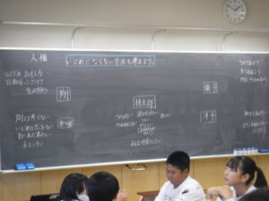 6年生は、「人権教室」でした。これは、魚津人権擁護委員協議会から講師をお招きし、授業は山本先生が「人権」を考える授業を行いますが、委員の皆さんにアドバイスをいただくものです。前回、事例から考えたことをもとに、グループで考えを深めました。「人権って何だろう?」と考えていくきっかけになったことでしょう。人権擁護委員には、私どもの先輩方である元入善町の小学校の先生や地域でボランティアを活動しておられる方が多く、心より感謝申し上げます。
