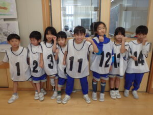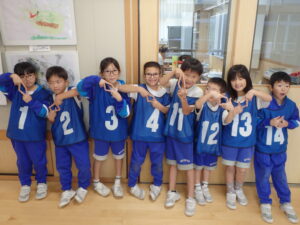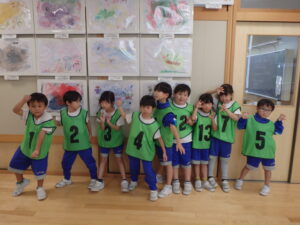 1年生の体育「的あてゲーム」のチーム紹介用の写真ができました。なるほど、チームの意識を高めるには、こういうのも効果的ですね。