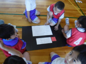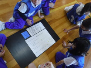 1年生の体育「まとあてゲーム」。ふりかえりは、とても大事ですが、なかなか鉛筆で書くのは時間がかかるのです。このふりかえりですが、タブレットでやるか、◎をつけるか、シールを貼るのか。1年生の森田先生は、簡単で見やすいシール型に改良しました。さっそく、授業では子供たちの小須賀わかりやすいようです。いろいろ試していきましょう。