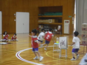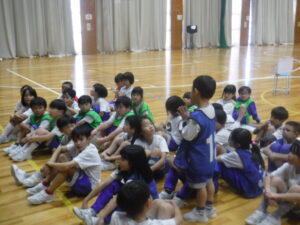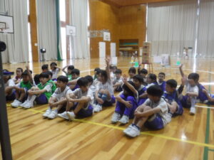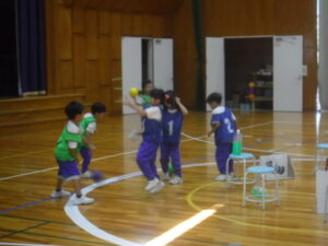 1年生の体育科「まとあてゲーム」。2年生との違いは、「ボールが多い」ことです。ですから、どんどんボールが投げられます。今日は、話し合いの聞き方がパワーアップしていて、感心しました。ゲームもスピードがアップしています。