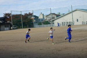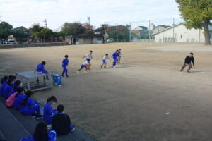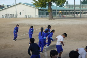 持久走が最終回を迎えている学年が増えています。次なる単元に変わっていきます。6年生、自分の宣言した1周のペースで、4周を走ります。ペースメーカーで走った太田先生が、一番速かったという結末でした。長距離は、走っている人が速いのです。2回も3回も走る6年生もいました。