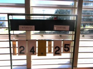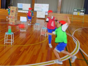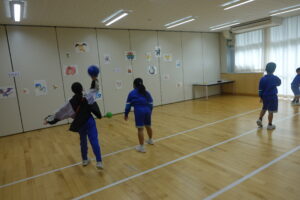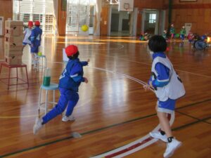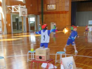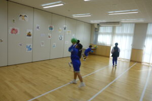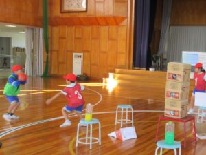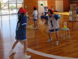 こちらも盛り上げっています。1年体育「ねらってバンバン!まとあてゲーム」