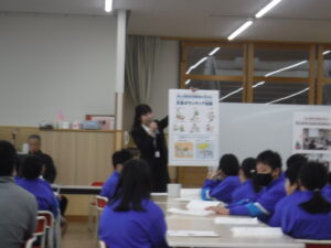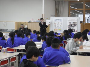 5、6年生を対象に、赤い羽根共同募金の「ありがとうメッセージ」紹介を行いました。入善町社会福祉協議会の桑守様と入善町の民生委員・児童委員の方にご来校いただき、赤い羽根共同募金の仕組みや使われ方等についてお話を聞きました。入善町が住みやすい地域になるように使われたり、災害準備金への貯蓄や災害ボランティア活動資金として使われたりしていることを知り、募金を通して人とつながることの大切さを学ぶことができました。募金が、多くの方の役に立っている実感が高まったでしょうか。