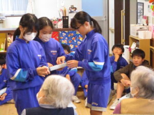 環境ボランティア委員会が、「ささや木」さんを訪問させていただきました。コロナ禍を経て、久しぶりの実現になりました。子供たちもドキドキでしたが、「行ってよかった」という感想が多くありました。みなさんに歓迎していただき、子供たちにとっても、とてもいい経験になりました。ささや木さんからは、児童の送迎バスまで用意いただきました。ありがとうございます。