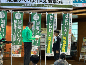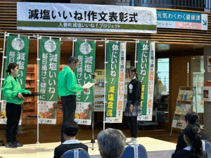 13日(木)サンウェルにて、「減塩いいね!作文表彰式」が行われました。