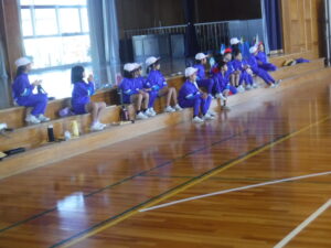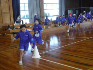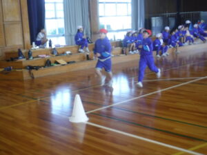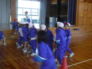 白熱し、涙もあった「ドーナツボール」の後の2年生の体育。体育館で「じきゅうそう」として、4分間走をしていました。いっしょうけんめいに走り、いっしょうけんめいに応援する。とても、すてきな体育でした。