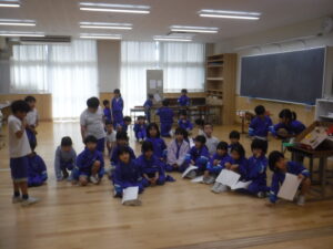 1年生は、「にゅうぜんほいくしょの年長さん」を招待する日も決まり、いよいよ「あきまつり」の準備が進んできました。今日は、「がくしゅうさんかん」でお家の方に観ていただくための、「おみせのリハーサル」です。どんなルールなのか、どうやってやってもらうのか、接客は?生活科らしい「まなび」が続いています。まずは、19日(水)の学習参観ですね。
