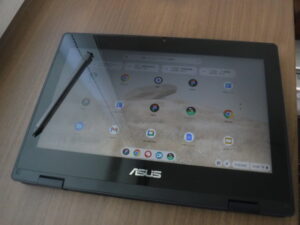 新しいタブレットの設定を行っています。Windowsタブレットから、Googleタブレット(ChromeBook)へと変わりますので、改めて「Chromebookの使い方」「学習用端末の使用についての同意書」を配付しました。新しいアプリの使用になりますので、お子さんと話をされて、「同意書」を学校まで提出してください。