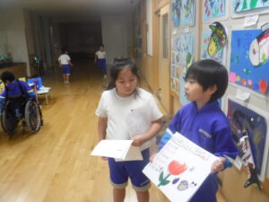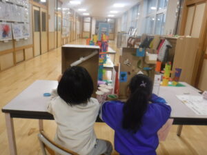 1年生は、お家の人を招待しての「あきまつり」。2年生は、「まちたんけん」の発表をします。その準備が、日々、行われています。活動的な生活科の魅力があふれています。
