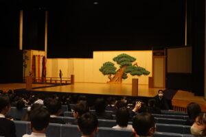 舞台芸術等総合支援事業 学校巡回公演「はじめまして能”楽”」がコスモホールにて行われました。これは入善町教育委員会が、入善町の5,6年生を対象に2年に一度開催している事業です。令和5年はミュージカルでしたし、入善小学校でワークショップも開催していただけました。今回は、「狂言」と「能」。子供たちには難しいでしょうが、なかなか観ることができません。私たち教職員も楽しみにしていましたし、満足いたしました。小学生用に解説があり、かなりわかりやすく能「黒塚」を堪能しました。ちなみに2人の質問者は、ともに入善小学校の児童でした。「能面はいくらするのか?「その仕事は、疲れますか?」シテ方(主役)は、「疲れます」と答えられました。お世話いただいた皆様に感謝申し上げます。