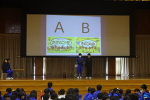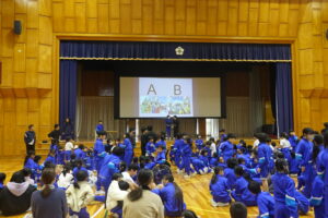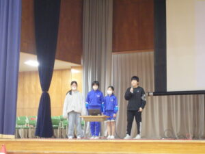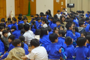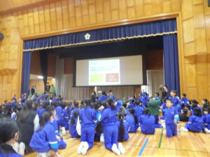 11月の集会は、図書委員会を中心とした集会でした。「図書室の使い方」について、プレゼンがありました。「一度に借りられるのは、2冊まで、期限を守って返してください」等のわかりやすい告知がありました。図書委員会からの二択クイズ、企画・集会委員会の究極の二択クイズには、全校がわきました。そして、イントロクイズ。大盛り上がりの集会でした。終わりの挨拶等のあいさつがしっかりしていて感心しました。5年生も場慣れしてきましたね。やはり、いろいろやってみると伸びていきます。