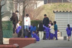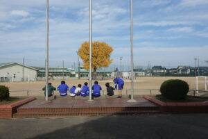 11月の後半にしては、温かい日です。1年生と6年生が一緒に「花の苗植え」を予定していましたが、とてもいい天気になりました。1年生は6年生との活動をとても喜びますし、6年生もとても面倒見がよく、感心します。おかげ様で、しばらく花壇を彩ってくれる「花」が植えられました。イチョウの葉の色が、とても鮮やかですが、少しずつ散り始めました。