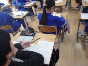 5年2クラス、6年生の「道徳」は、生徒指導主事の太田先生が担当しています。道徳は、「特別の教科 道徳」として、とても大事な教科となっています。道徳の授業は、「考え、議論する道徳」を目指し、「資料を読んで、感想を書いて終わり」にならないよう工夫しています。太田先生も毎時間、授業準備に時間をかけ、子供たちが議論し、価値を深めていく授業に挑戦しています。「今日、発言増えました」「よく考えてくれました」と太田先生の感想がいつも聞こえます。5年B組の道徳、どうだったのでしょう。次の授業には、前回の授業をまとめた「道徳だより」が太田先生から発行されています。