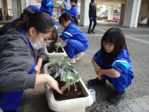 11月の後半にしては、温かい日です。1年生と6年生が一緒に「花の苗植え」を予定していましたが、とてもいい天気になりました。1年生は6年生との活動をとても喜びますし、6年生もとても面倒見がよく、感心します。おかげ様で、しばらく花壇を彩ってくれる「花」が植えられました。イチョウの葉の色が、とても鮮やかですが、少しずつ散り始めました。