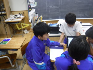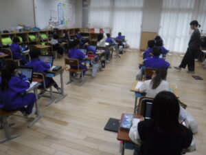 1年生。新しいタブレットにも慣れ、上手に使っています。すきま時間に、タブドリも上手に使っていますね。テストが終わった等のすきま時間を有効に活用するだけで、学期末の復習になります。