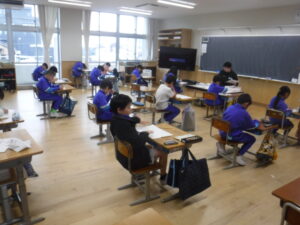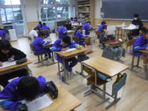 各学級、テストをしている姿が見られます。200点テスト(学期末テスト)も始まっています。週案には、「テスト勉強」という宿題もあり、学級でもテスト直しも丁寧に行われています。そう、学期末ですね。残り登校する日は、10日となりました。