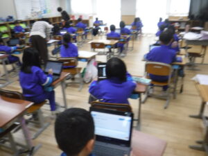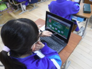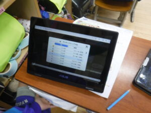 各教室は、2学期の復習をしながら、テスト、テスト直し、そしてドリル学習をしています。タブレットでのAIドリルが導入されてから、即、解答が評価され、結果を確認し、もう一度解いてみる等、自分のペースで進めることができます。紙のプリントも大事ですが、フィードバックの速さと個別に対応できるのは、本当にすばらしいなと感じます。すきま時間に1年生も「タシピタ」をしています。なんと、この教室にも「全国1位」がいました。「全国4位」もこの学級にいました。ひょっとして、町内の学校は、まだ参加していないのでしょうか。