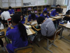 5年生の図画工作科「木版画」です。以前は3学期にしていましたが、なにしろ時間がかかってしまうのです。一番のコツは、2学期の終わりから始めるなのです。勝田先生、さすがですね。もう彫り始めています。「動物」のようです。一番最後の写真は、まさかの「アルマジロ」でした。ただの白黒版画ではないのかもしれません。続きはお楽しみに。