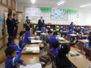 入善小学校学校評議員会でした。これは、1年間「学校評議員」をお願いしている皆さんに、学校の様子を見ていただき、学校運営について報告し、ご意見等をいただく貴重な機会となっています。