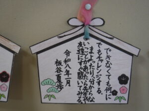 新年の誓い、3学期の目標等の「めあて」を言葉にする活動がされています。4年A組の前に「絵馬」が掲示されています。おもしろいですね。一工夫が、学校を元気にします。 投稿ナビゲーション 47都道府県から(4年)【12.23】