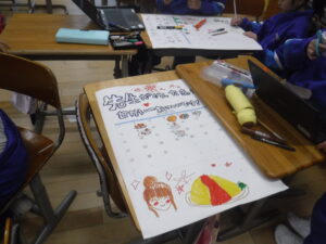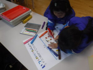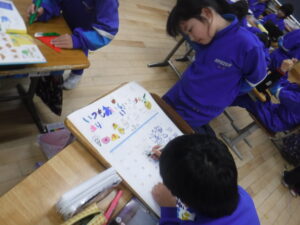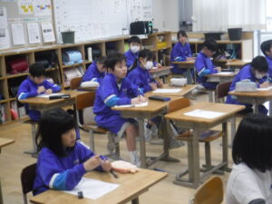 21日から、「給食週間」が始まります。2年教室では、調理員さんへのプレゼントづくりに取り組んでいます。2年生は、ペアやグループでの「ものづくり」に、とても慣れています。生活科で身に付けた力ですね。3年生は、「かんしゃのお手紙」。書き出しから、悩みますね。これは、国語科の学習ですので、「書き出し」のパターンや例をもとに、手紙を書き上げていました。調理員さんは、朝早くから、休みなしで作業に入られるので、私たちもなかなかお会いできません。自校給食、自校炊飯の学校であることに感謝します。
