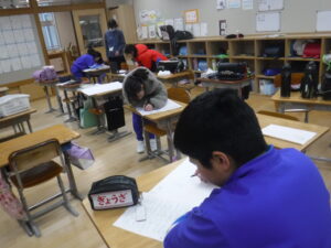 委員会活動の日。1月27日の給食・環境ボランティア委員会の集会、そして、長縄チャレンジの準備を体育委員会がしてくれています。この頃になると、進行の計画やポスターも短時間で作り上げていきます。「なわとび集会(仮称)」も楽しみですね。