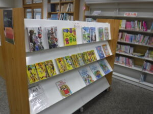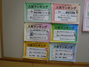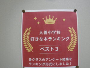 図書委員会が「各学年の好きな本ランキング」「私のおすすめの本」の掲示をしてくれています。定期的に入善図書館から司書が来られて、新刊図書の入荷、本棚の分類、