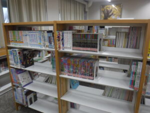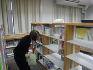 整理をしてくださっています。こうして見ると、とっても魅力的な図書館です。今日の大休憩は、貸し出しには誰も来ません。みんな、グラウンドや廊下、体育館で「なわとび」等をしていたのです。お昼休みは、来てくれるかな。