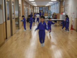 休み時間に、廊下を歩いていますと、「見て!」と声がかかります。2年生、そして1年生も二重跳びの上手いこと。「後ろ二重跳びをやってみってみよう!」と新たな宿題を出してみました。できないことができるようになる。なわとびって、いい取り組みです。低学年のうちに、しっかりと取り組むと、いいんですね。ブームをつくり、生活にしていく、先生たちが、すごいです。