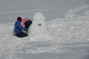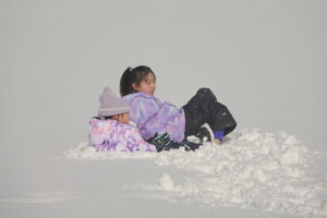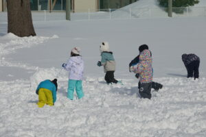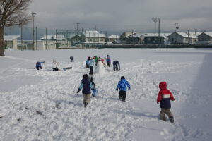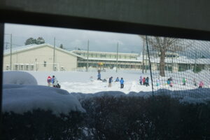 すばらしい雪です。しかも青空。雪遊びの服装を準備している子は、休み時間に遊べます。服装等のご準備、ありがとうございます。これぞ、雪国の学校です。