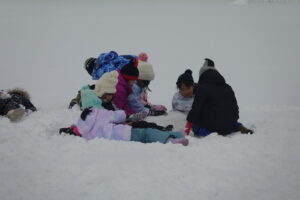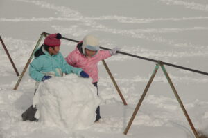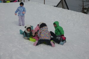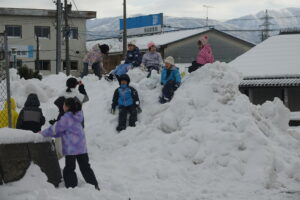グラウンドの積雪も申し分なし。築山(通称:スキー山)も除雪作業によって、巨大な斜面ができています。この坂は、除雪によって、最後は止まるようにできています。1,2年生は、今日、一緒に「雪遊び」をしました。天気もよく、雪の斜面を転がる、雪だるまをつくる等、雪でたっぷりと遊びました。これぞ、雪国の学校らしい冬ですね。