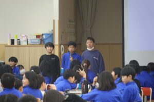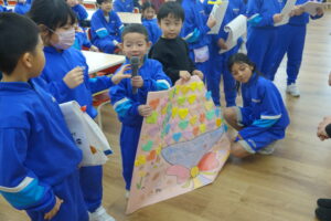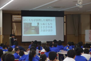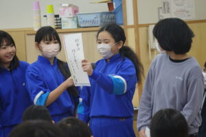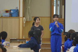 環境ボランティア委員会からは、クイズを通して、「環境ボランティア委員会の活動紹介」をしました。普段、どんな活動をしているのか見えにくいのですが、活動の内容がよくわかりました。5年生の司会、挨拶の子たちが、とても慣れてきて、堂々としてきました。もうすぐ5年生の時代になります。どんどん5年生の中から、成長する子が出てくると、頼もしいですね。