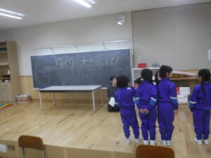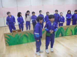 1年生の劇「おおきなかぶ」の練習を観ました。順調ですね。大きな声で言えたときには、〇と褒められながら、練習を積んでいます。演出も工夫されていますが、もちろん、ひみつです。