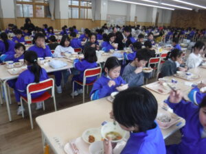 6年生が考案したメニューに、全校で投票し、実現した「リクエスト給食」が終了しました。本日、2回目のメニューが出され、大好評でした。