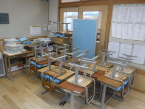職員の研修として、「不審者対応研修」を行いました。普段、不審者対応の「避難訓練」をしていますが、「子供の避難」がどうしても主になり、私たちの訓練部分が少なくなってしまいます。不審者への初期対応、職員室の連絡の様子、不審者へのさす又対応、教室での防御のためのバリケードの設置の仕方、全てを全員が参加して行いました。「初めて、不審者との対応を体験した」という声もあり、全ての対応を職員が体験できてよかったです。児童を守るための、教職員間の連携、不審者対応の実践力を高めることができました。入善警察署 刑事生活安全課から講師を派遣いただきました。ありがとうございます。