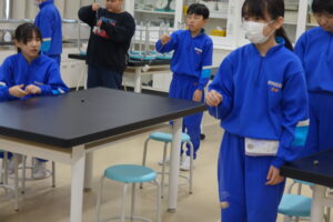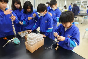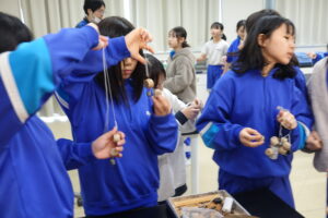 5年A組の理科。5年生の理科は、どちらも上田先生です。「ふりこ」の単元に入ったようです。上田先生は課題を与えず、自分で、いろんな長さ、重さのふりこを作ってみて、動かしてみる。「ああ、なるほど」「あれっ、おかしいぞ」等の自由な思考によって、単元の学習課題を見つけていくようです。