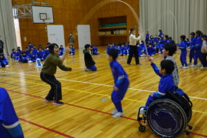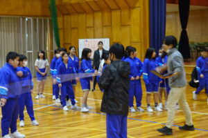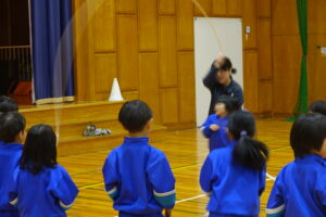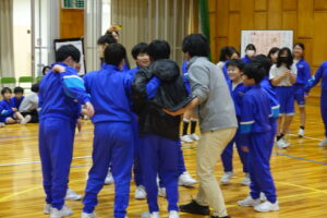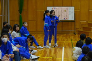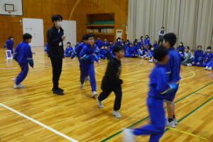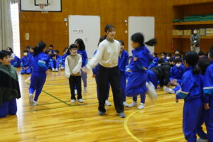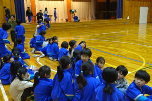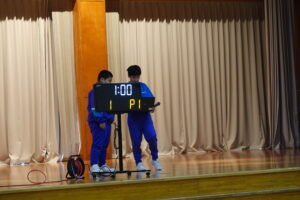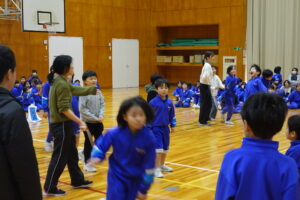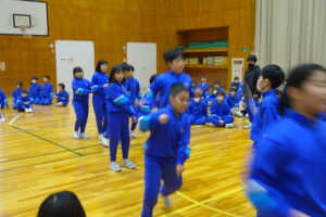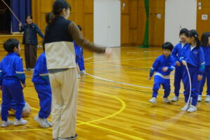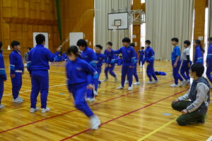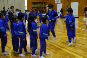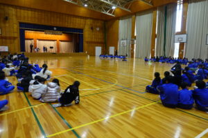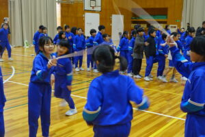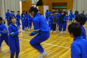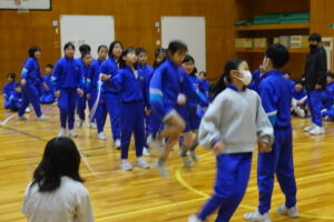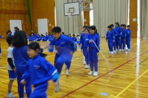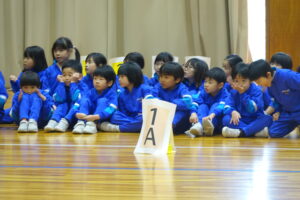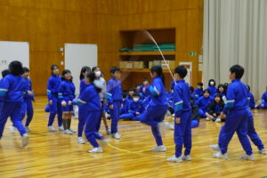 緊張感とわくわく感が、会場に伝わります。後半は、体育委員会主催の「8の字跳び 1分間チャレンジ」です。この日のために、各学級練習してきました。