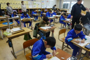 卒業式歌の練習が始まり、今日は外部講師を招聘しての「特別授業」でした。昨年に続いて、亀田絹子先生(元本校の先生)に2回の合唱指導をお願いしています。最初、みんなの合唱を聞いていただいて、声が出ない、音が外れるということもありますが、「6年生におめでとうの気持ちを伝えたい」という歌の核心について、教えていただきました。次回までの上達が楽しみです。