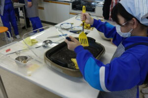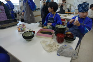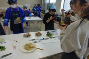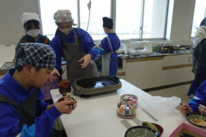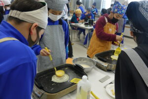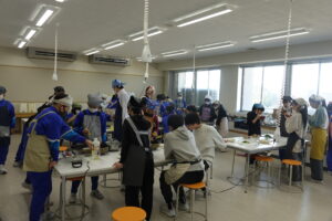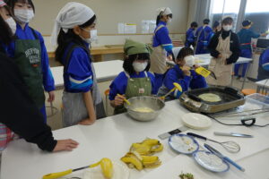 6年生の家庭科と思ったら、「学級活動」でした。卒業前に「お楽しみ会」をしたいという意見から、山本先生、太田先生で「お楽しみクッキング」を実施しました。「ラーメン」か「クレープ」の選択と聞いていましたが、途中からは「ラーメンもクレープも」という展開でした。イチゴ、バナナ等の具材も豊富で、おいしくいただいたようです。卒業前の楽しい会となりましたね。