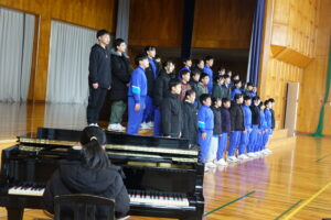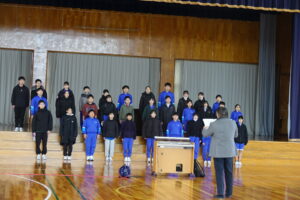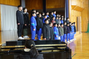 宮﨑先生を講師に招いての「卒業式歌」特別授業でした。最終回は、体育館で行いました。体育館に入って聞こえてきた「歌」に驚きました。もちろん、宮﨑先生の合唱指導力のおかげですが、6年生も歌い方がわかってきて、とてもよくなっています。驚きました。「正解」という歌は、6年生が選んだそうです。やはり、歌っていいなと思いました。卒業式が楽しみになりました。